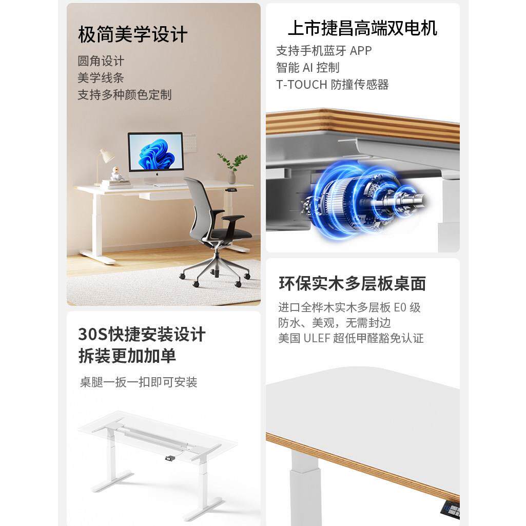ZOMO流线型电动升降桌站立电脑桌家用小户型办公桌自动升降