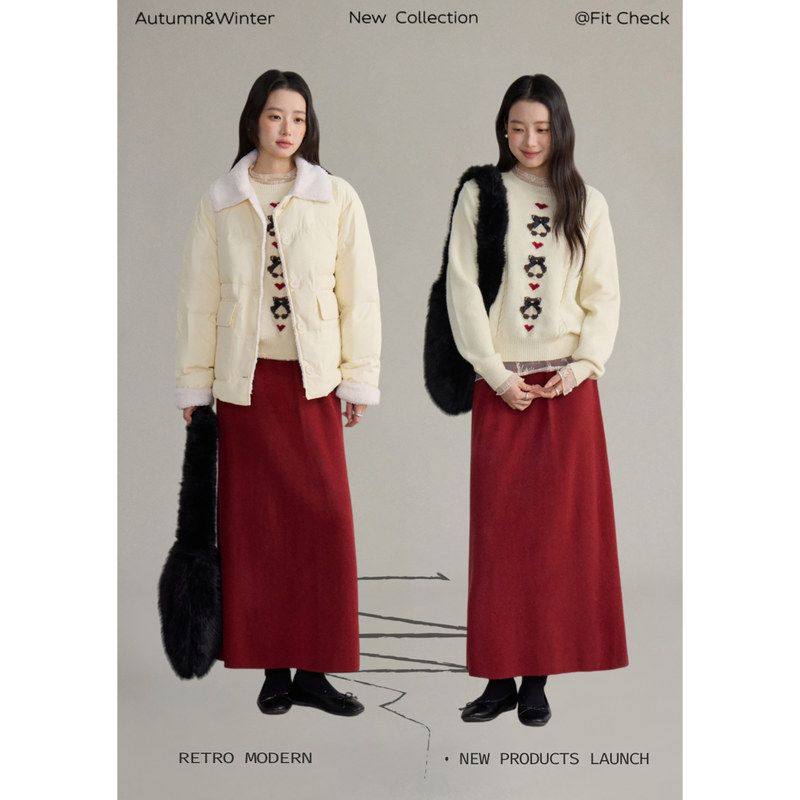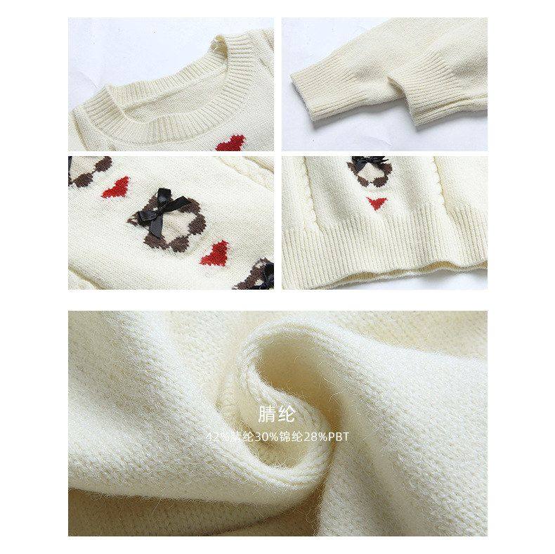 【小熊饼干】歌铭小熊爱心提花圆领毛针织衫女冬季长袖毛衣N0107D