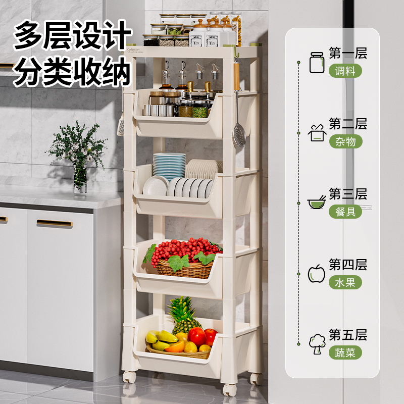 蔬菜置物架小推车家用厨房落地多层收纳架多功能菜篮子零食储物筐