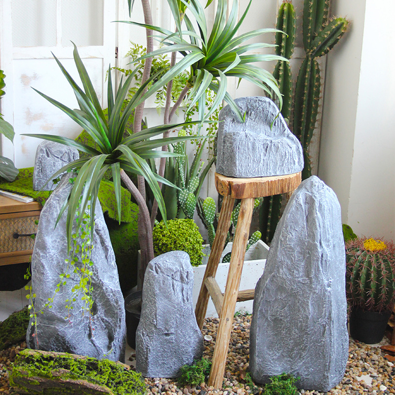 鱼缸装饰仿真玻璃钢石头室内庭院花园假山鱼池落地摆件软装造景