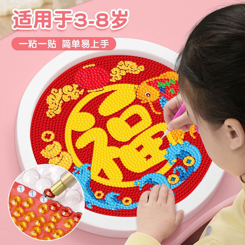 钻石贴画中国风手工儿童diy材料包财神爷福袋粘贴水晶点钻砖石画