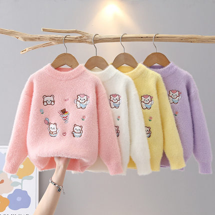 女童毛衣2025新款冬装洋气儿童水貂绒打底衫秋冬童装女孩加厚上衣