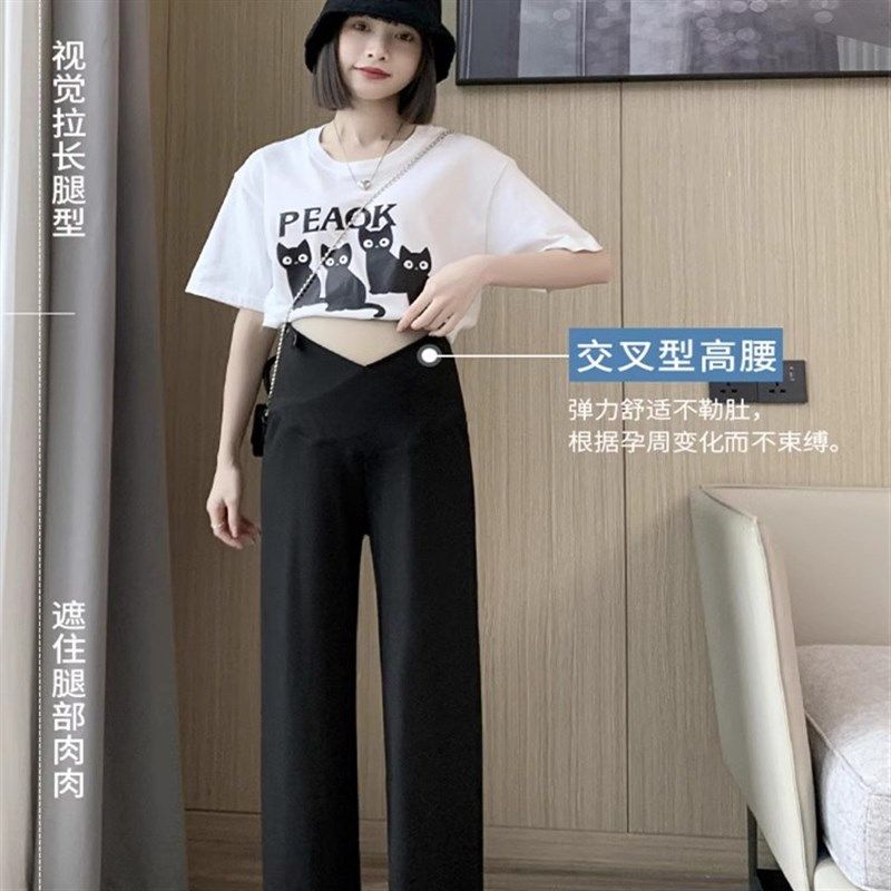 孕妇裤女夏季外j穿薄款低腰休闲宽松阔腿裤防蚊长裤夏装可调节大