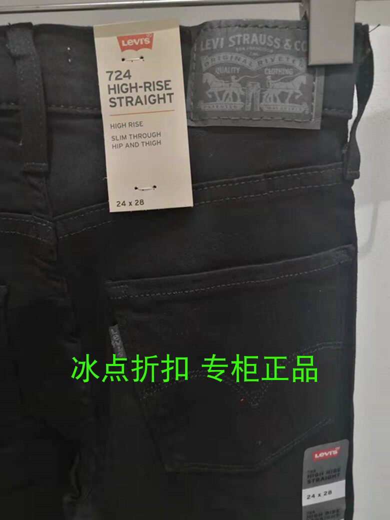 Levis李维斯专柜正品18883-0016女士休闲724黑色高腰直筒牛仔裤
