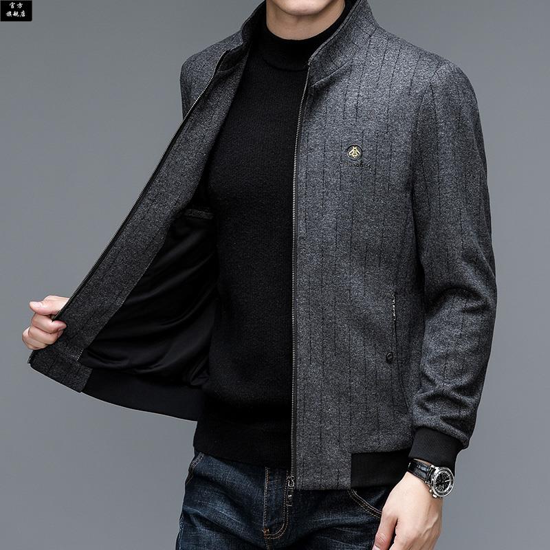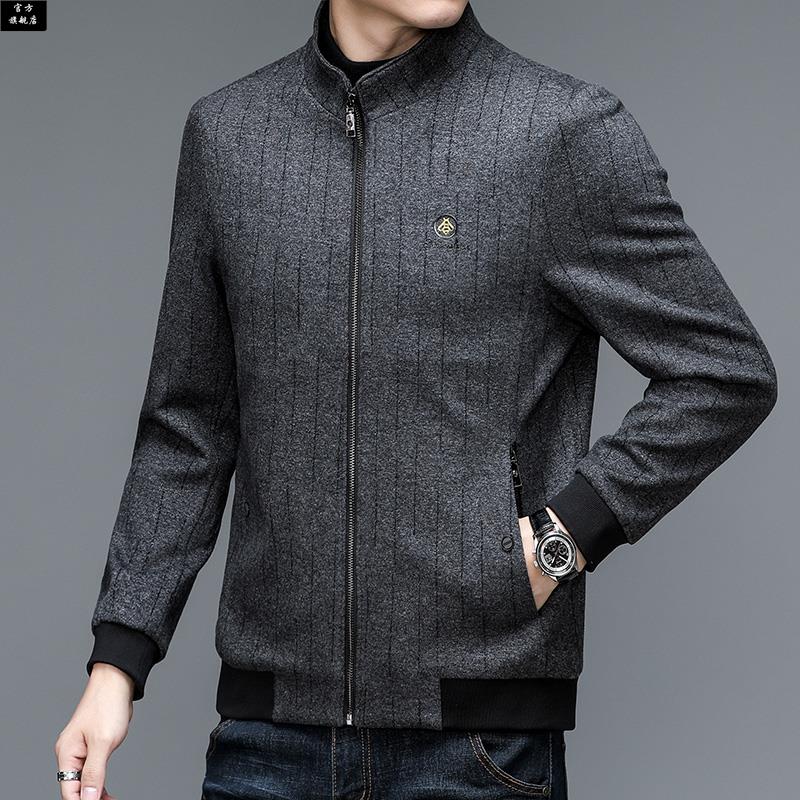 保罗官方立领夹克男休闲春秋季薄款毛呢外套短款中年爸爸商务男装