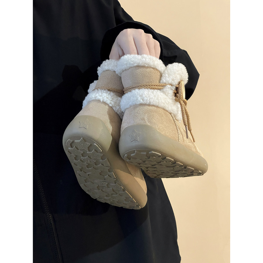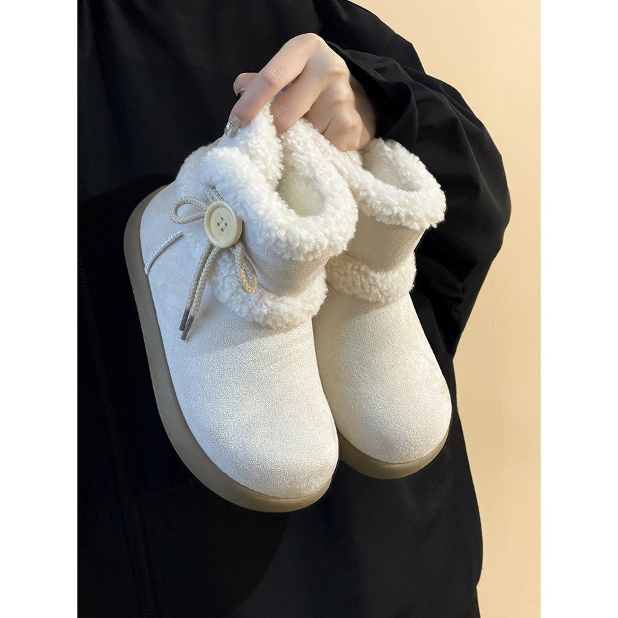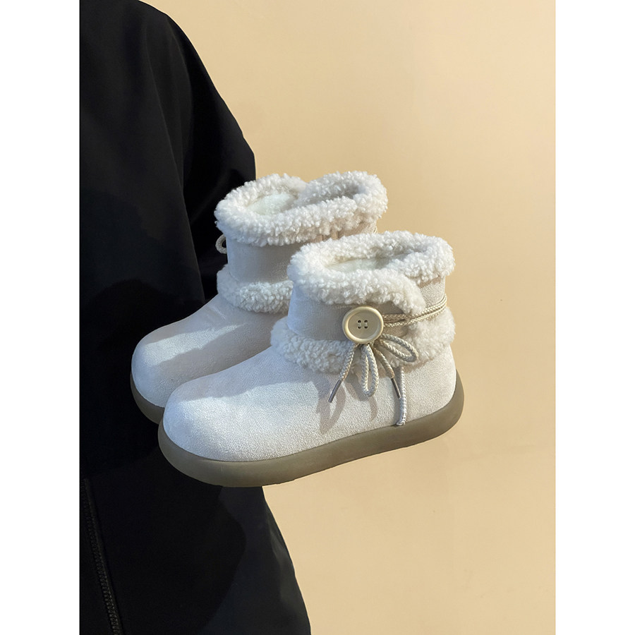 路十三纽扣设计雪地靴女鞋2025冬季爆款加厚高帮保暖棉鞋面包鞋