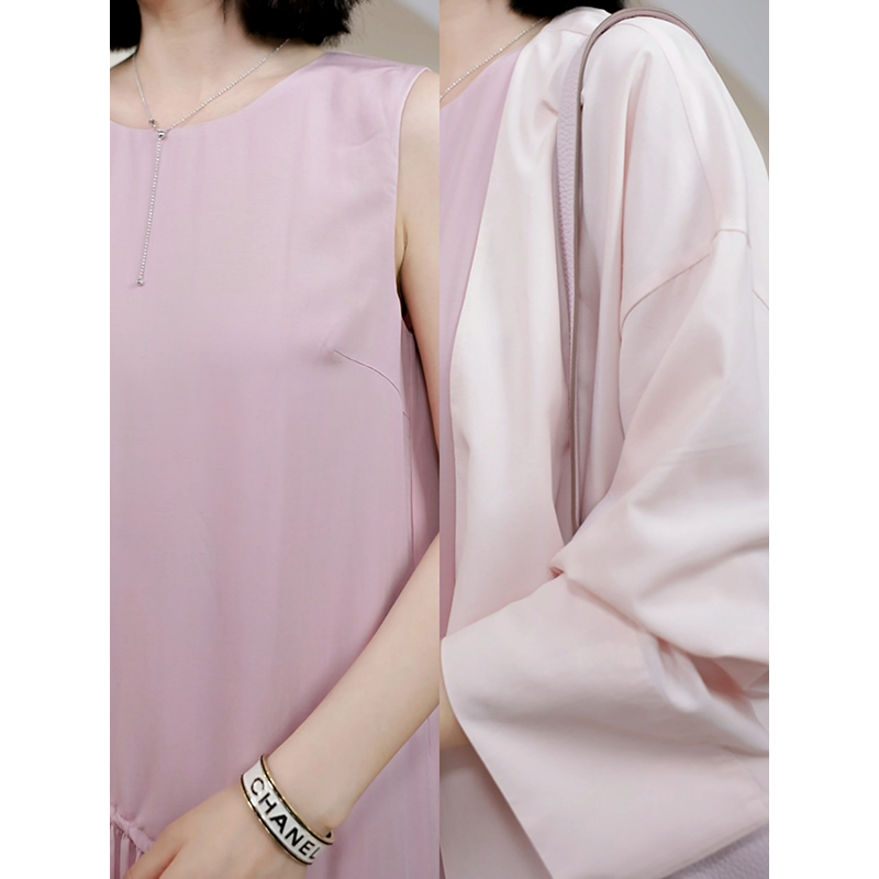郭九九呢 天丝亚麻禅意风宽松显瘦连衣裙夏季长裙简约百搭开衫