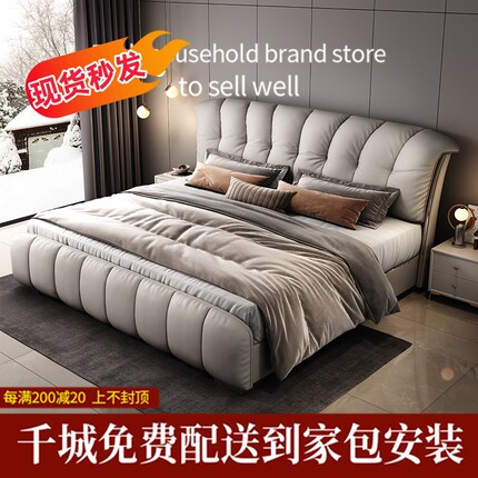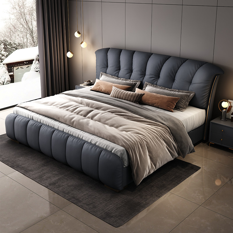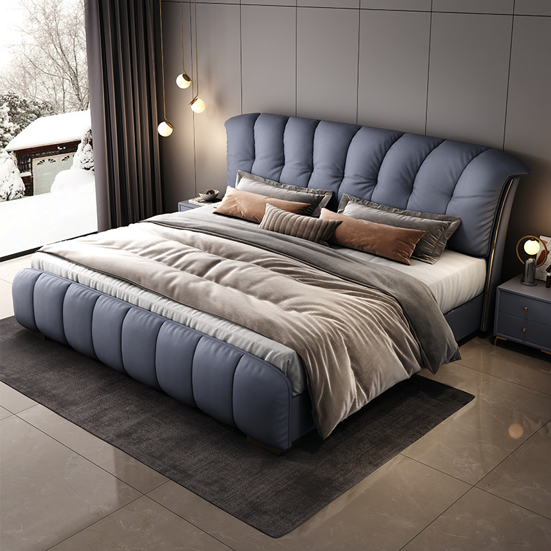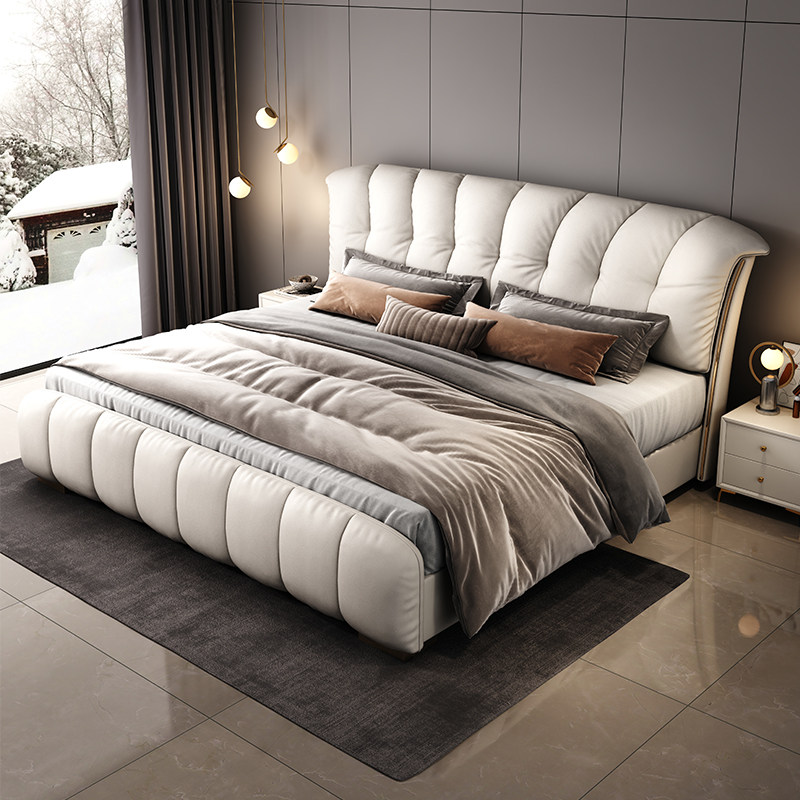 金可儿轻奢真皮床主卧室高端大气意式软包现代简约双人婚床2米202