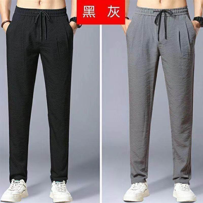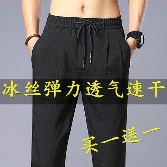 冰丝透气弹力松紧腰速干运动裤春秋超薄款修身百搭男中老年男士