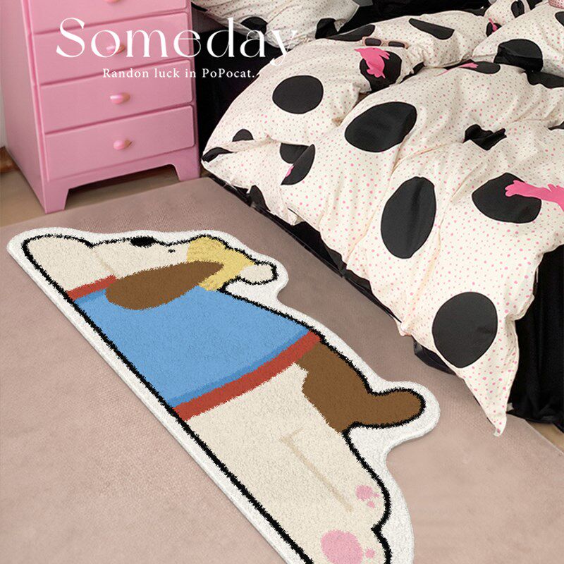 仿羊绒小狗床边地毯卧室儿童房间长条床边毯级感沙发毯飘地垫