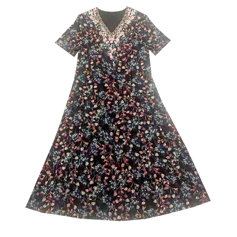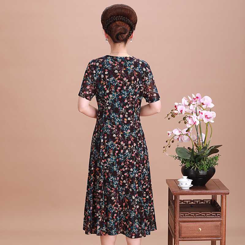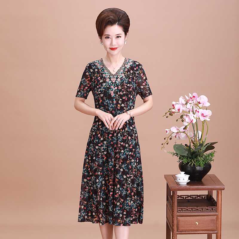 典云间夏季新款台湾纱中年妈妈碎花裙洋气减龄显瘦女装大码连衣裙