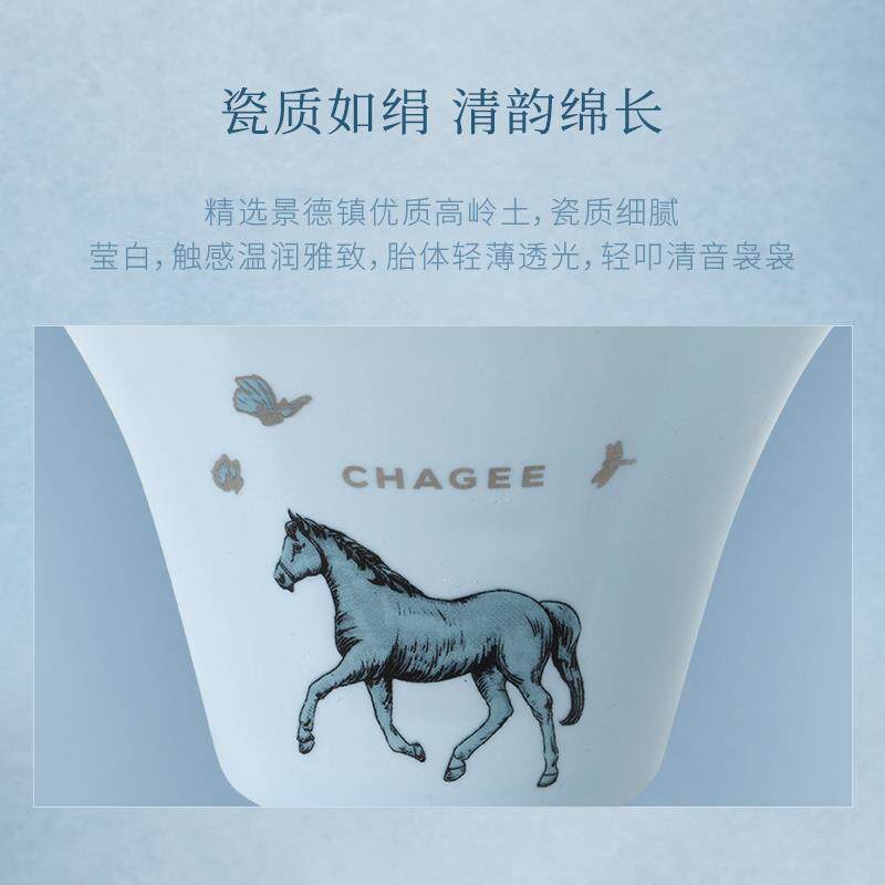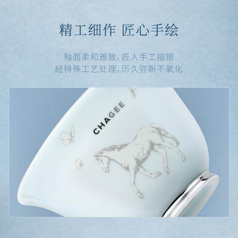 霸王茶姬茶具茶趣系列青釉描银盖碗陶瓷杯蓝白茶杯套组高档送礼