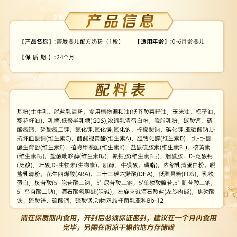 贝因美菁爱婴幼儿牛奶粉1段800g*6罐乳铁蛋白5种核苷酸全面营养