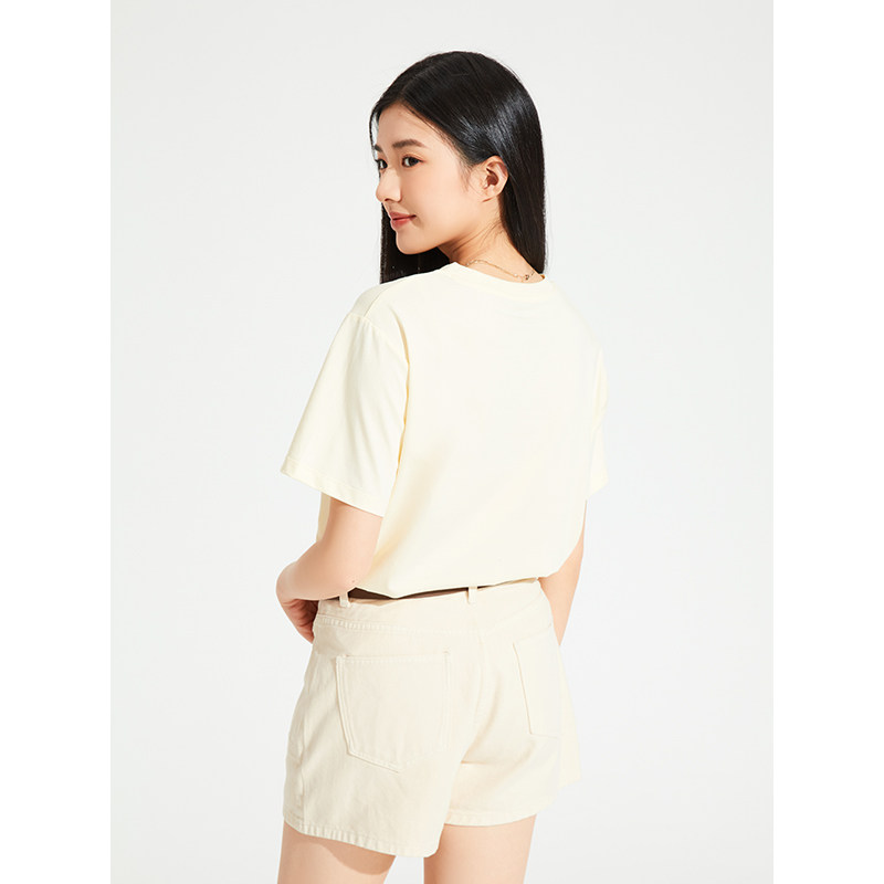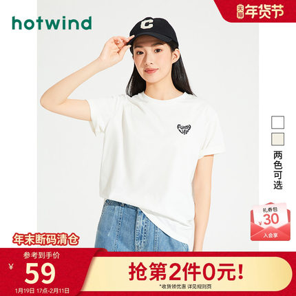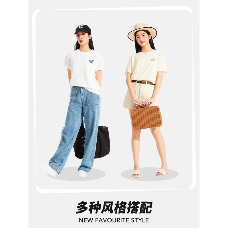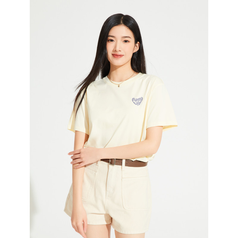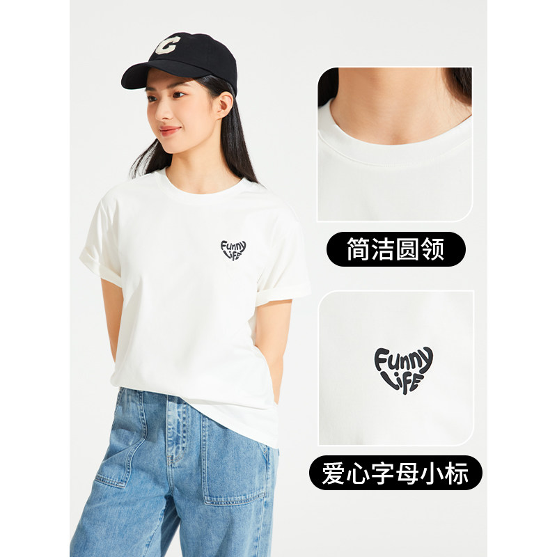 热风女士白色短袖T恤2025年夏款字母心形白色T恤宽松舒适短袖上衣