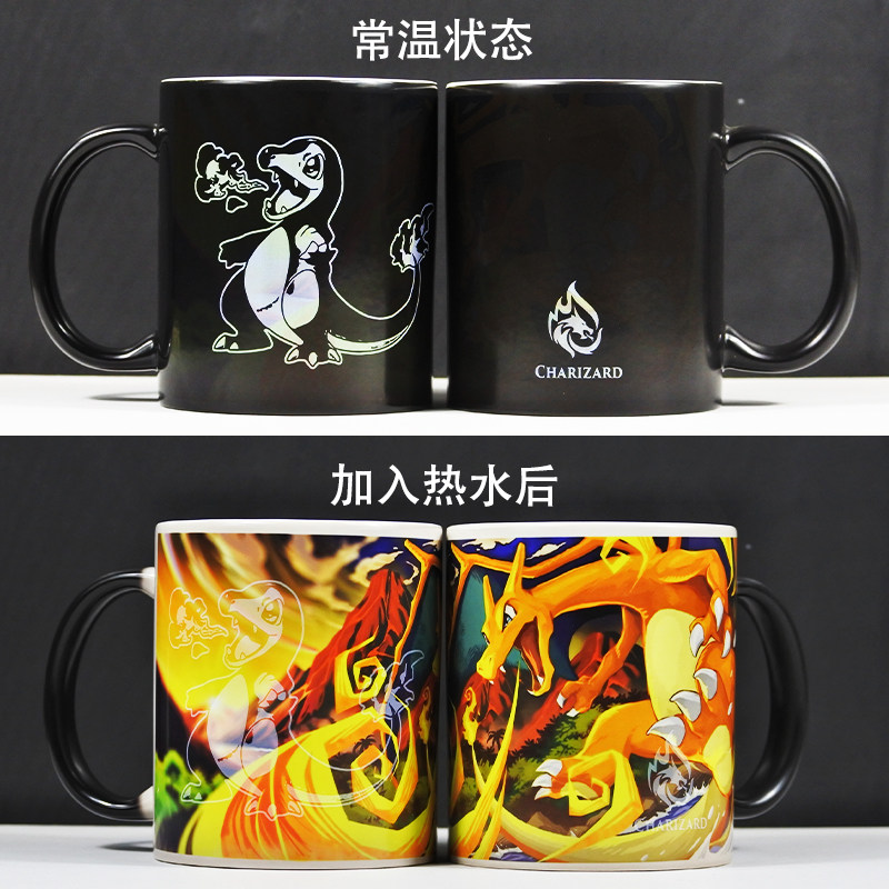 宝可梦喷火龙水杯小火龙变色杯子双层图案陶瓷马克杯学生动漫
