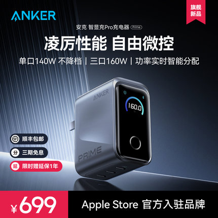 【旗舰新品】Anker Prime安克160W智显充Pro氮化镓充电器多口快充适用苹果17华为小米手机macbook笔记本电脑