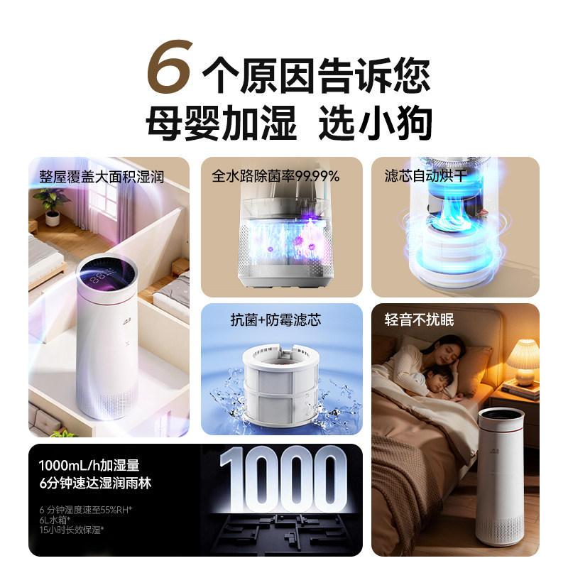 小狗米家无雾加湿器家用卧室静音空气加湿机25年新款孕妇婴儿除菌