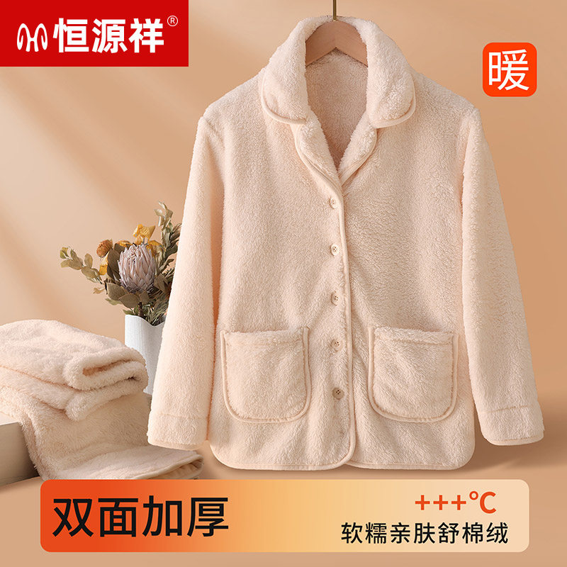 恒源祥珊瑚绒睡衣女秋冬季加厚加绒甜美宽松舒棉绒保暖家居服套装