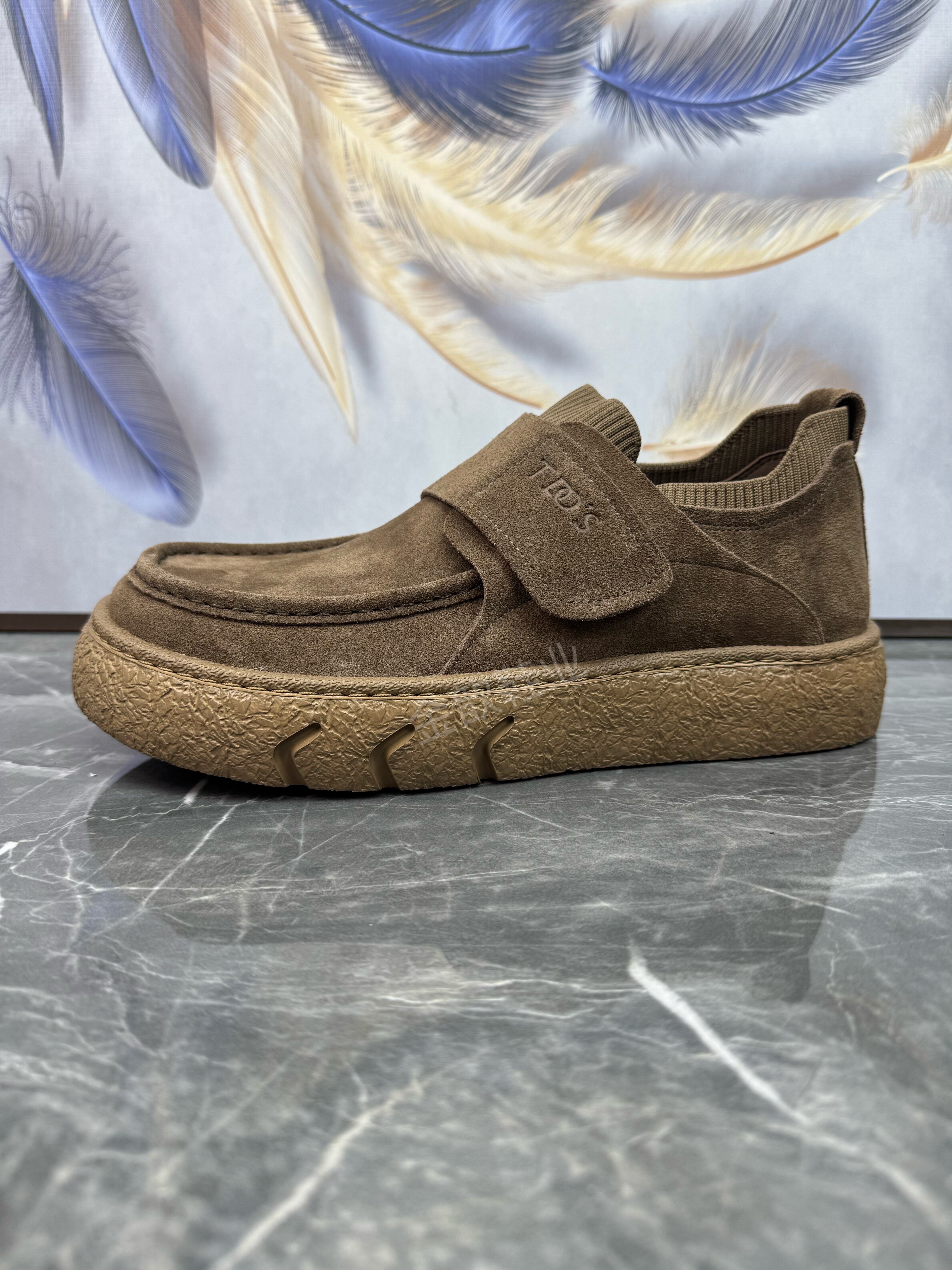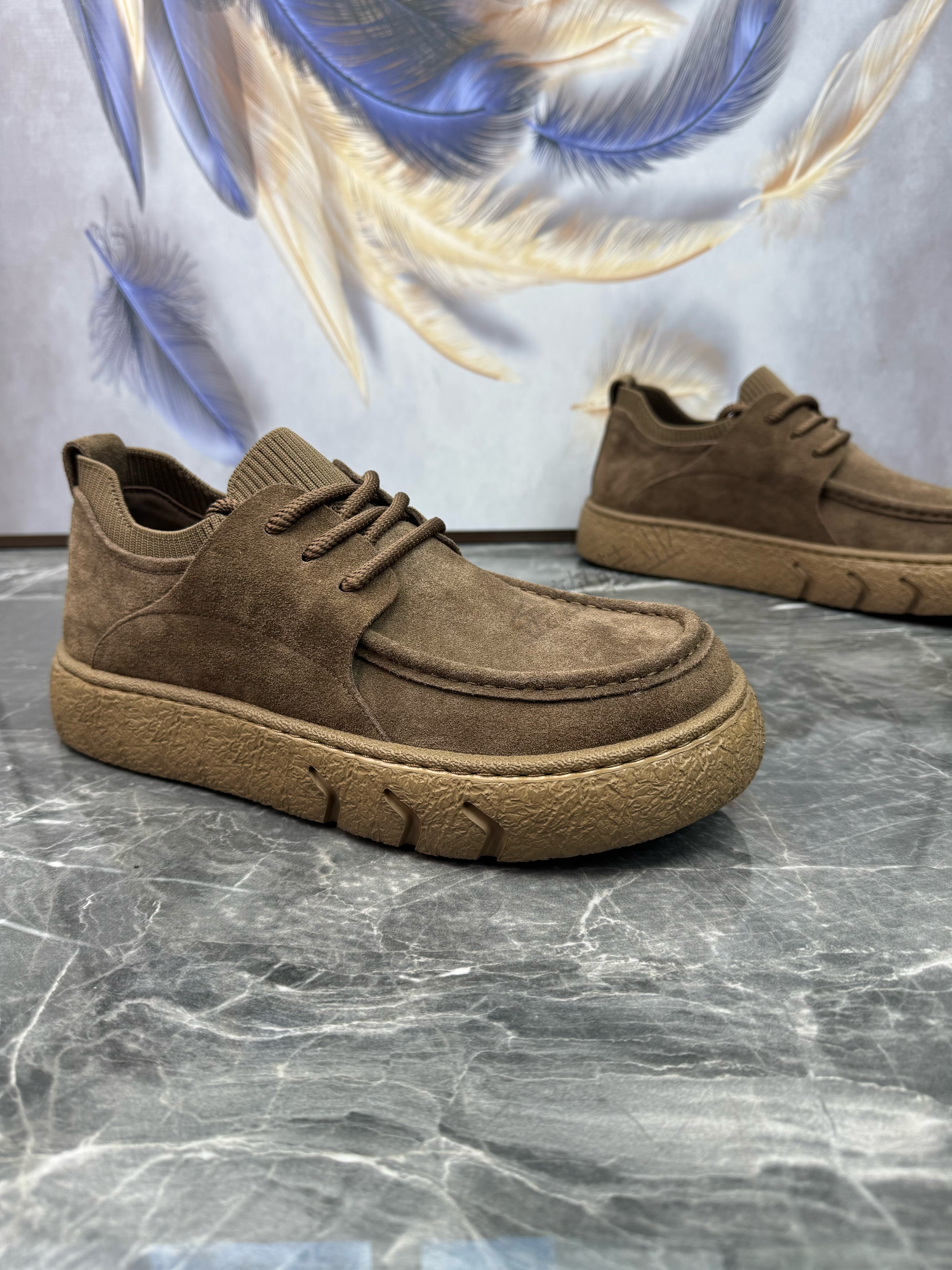 男鞋2025秋季新款磨砂牛皮轻便软底厚底复古真皮系带透气休闲板鞋
