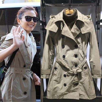 刘涛同款风衣女英伦家中长款修身显瘦秋冬塔夫绸外套双排扣上衣B