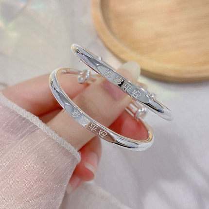 宝宝银手镯9999纯银长命锁儿童银锁小孩男女满月婴儿礼物银饰镯子