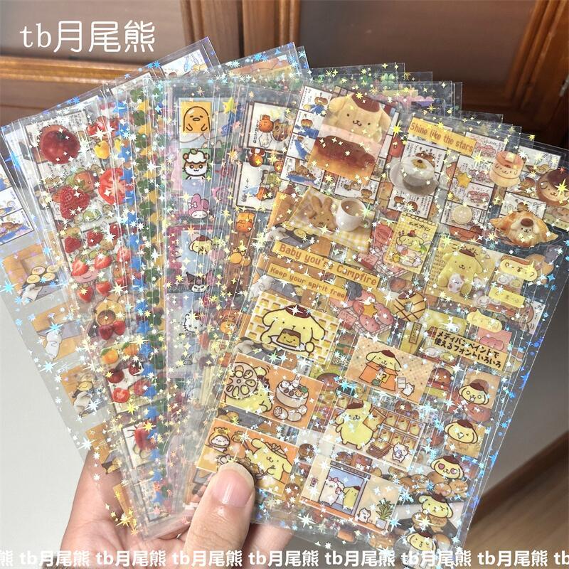 古早味卡通系列手账切膜贴纸烤焦面包镭射星星三丽鸥元素贴混合装