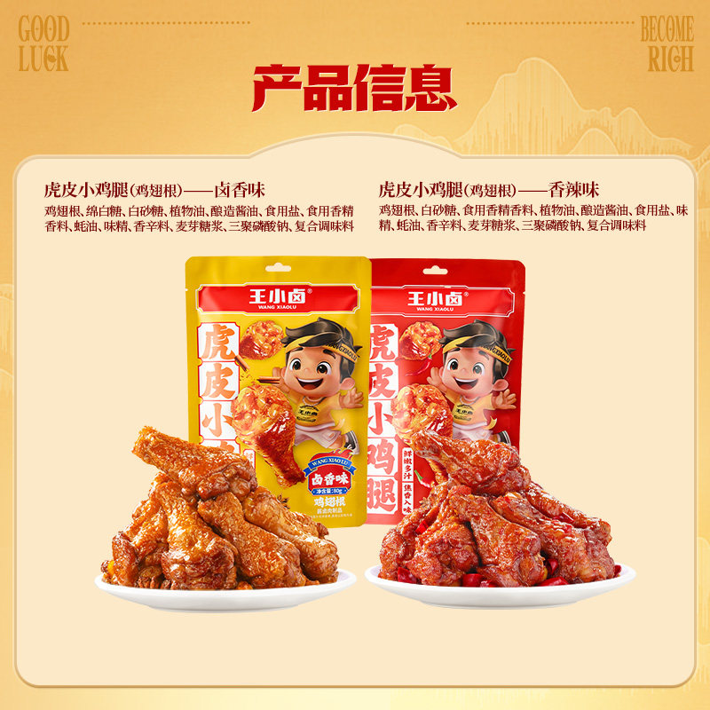 王小卤虎皮小鸡腿开袋即食办公室解馋零食卤香味休闲食品