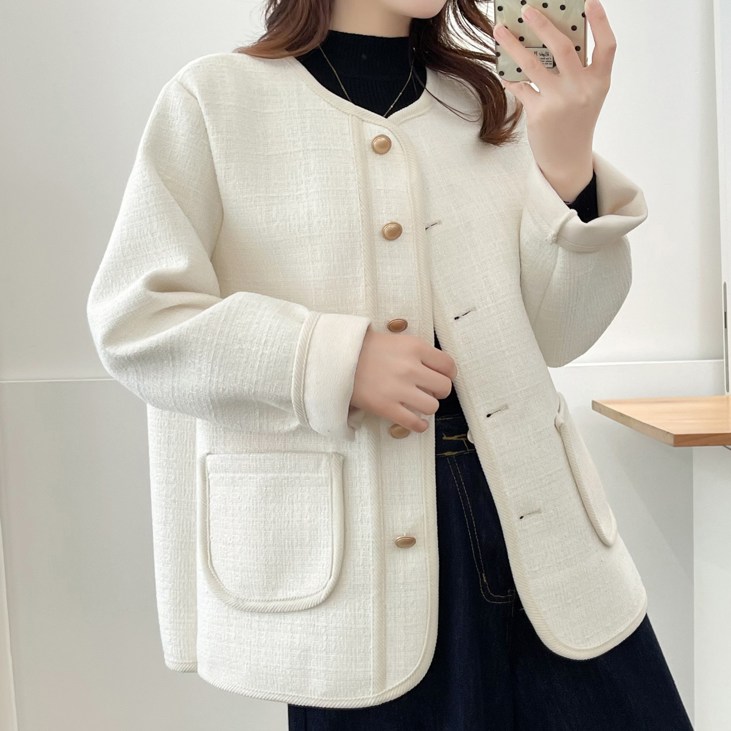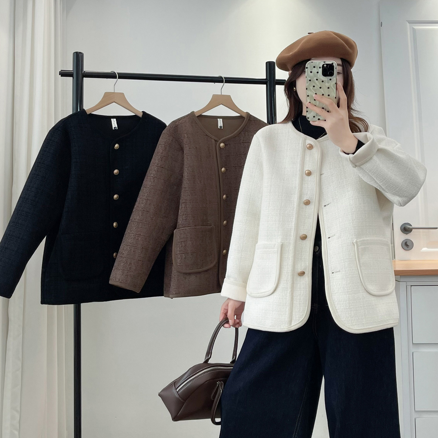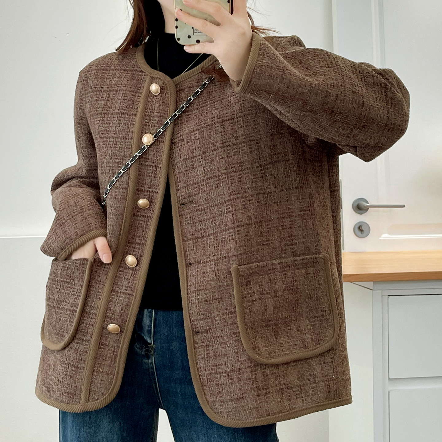 胖mm时尚洋气小香风加厚外套气质减龄大码女装200斤显瘦工装开衫