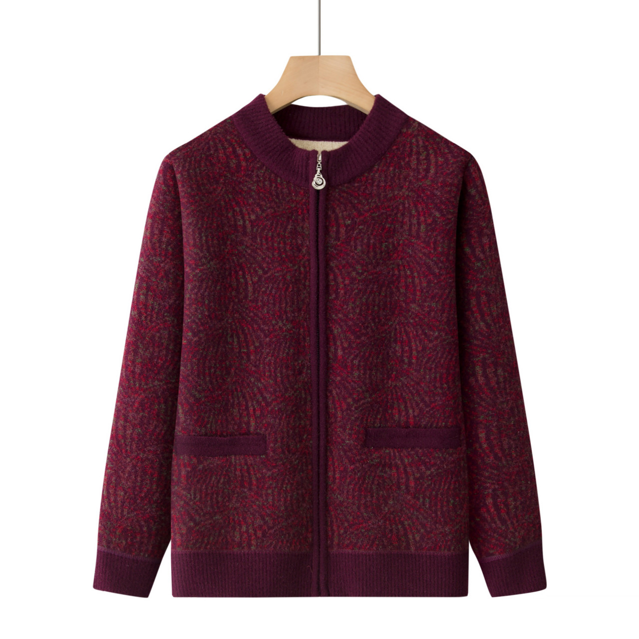 针织衣妈妈装秋冬款加绒开衫毛衣