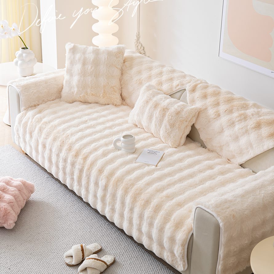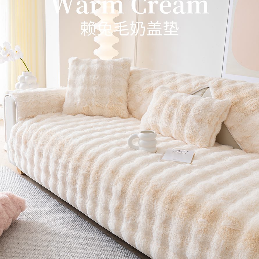 冬季加厚网红沙发垫毛绒毛绒防滑坐垫盖布巾兔皮沙发套罩2023新款