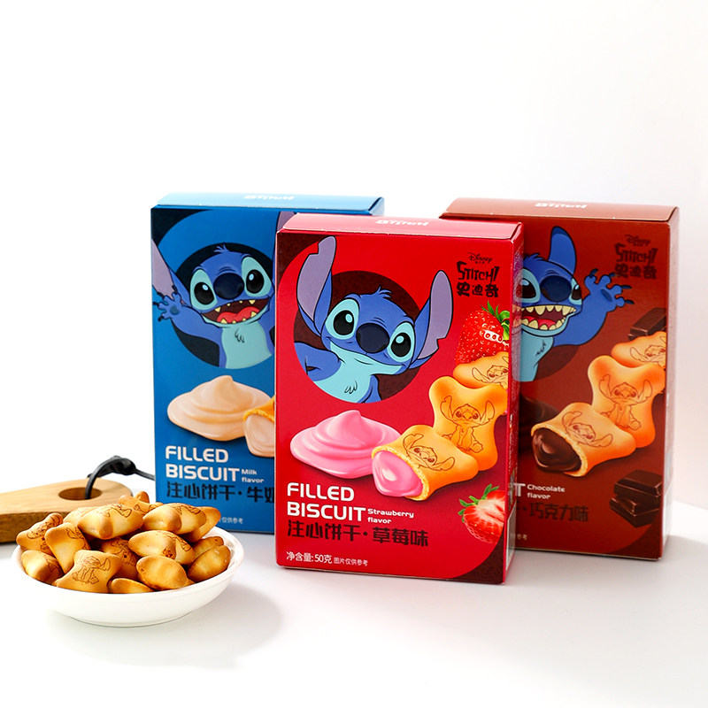 迪士尼史迪奇巧克力草莓牛奶味注心饼干儿童网红夹心饼干趣味零食