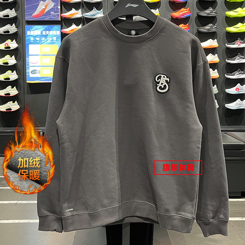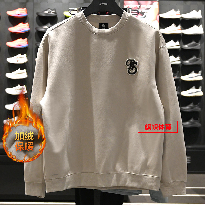 李宁男子加绒套头卫衣2025冬季反伍BADFIVE保暖宽松上衣AWDV879
