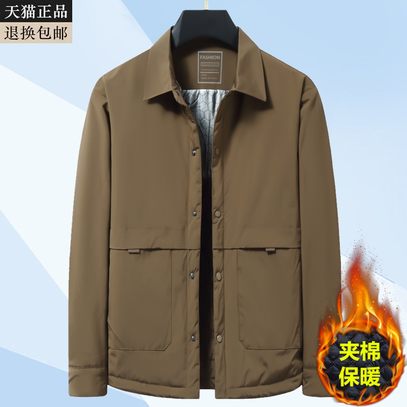 中年男装夹棉外套秋冬季爸爸翻领棉衣大码宽松商务休闲衬衫式棉服