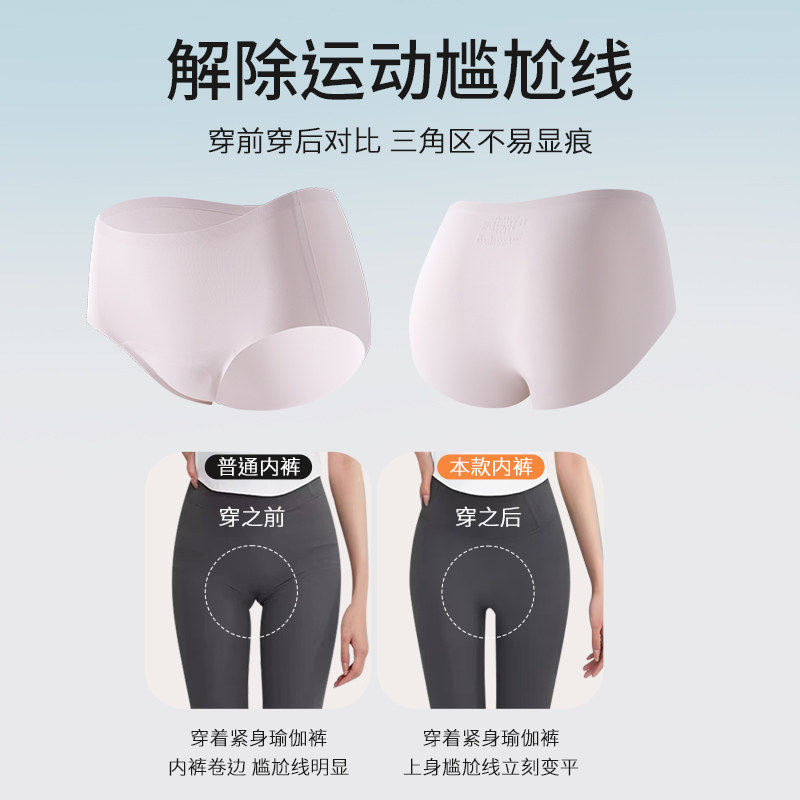 猫人瑜伽健身专用防尴尬线骆驼趾无痕抗菌加长裆乳胶垫三角内裤女