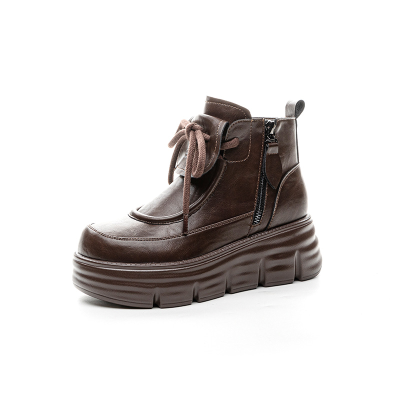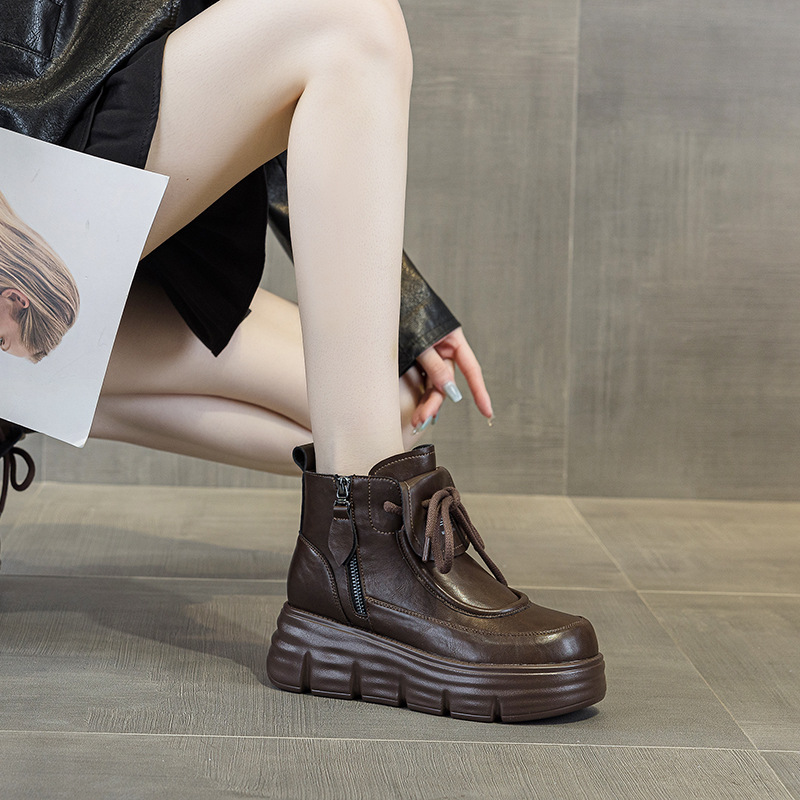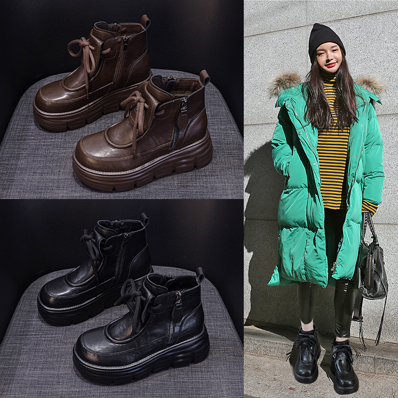 他她女孩马丁靴女2025新款春秋加绒高帮棉鞋厚底增高英伦风百高跟