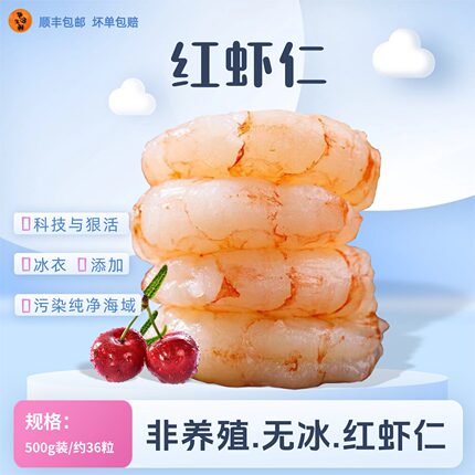 无冰野生红虾仁开背去虾线冷冻深海捕捞红虾仁0添加31*40虾仁