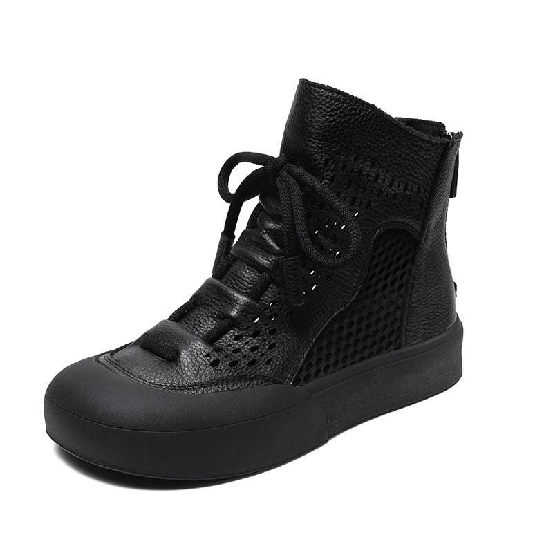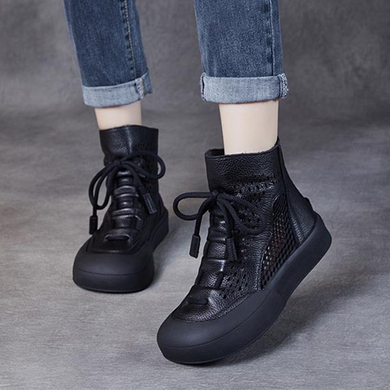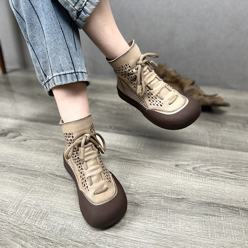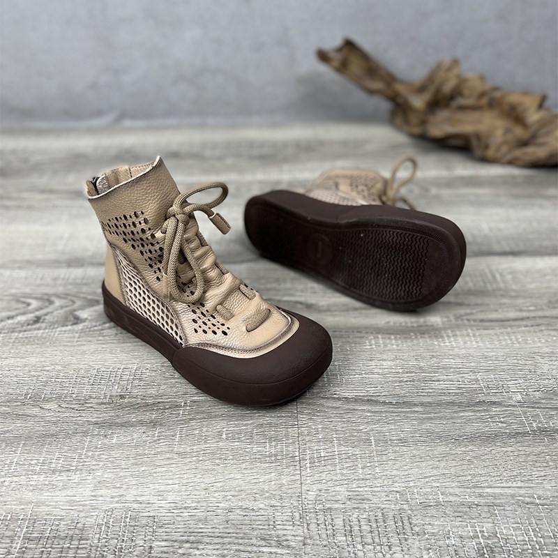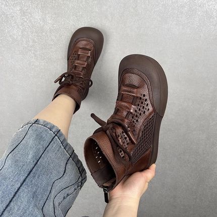 艺鞜头层牛皮软底复古凉靴平底百搭镂空女靴洞洞鞋春夏新款女凉鞋