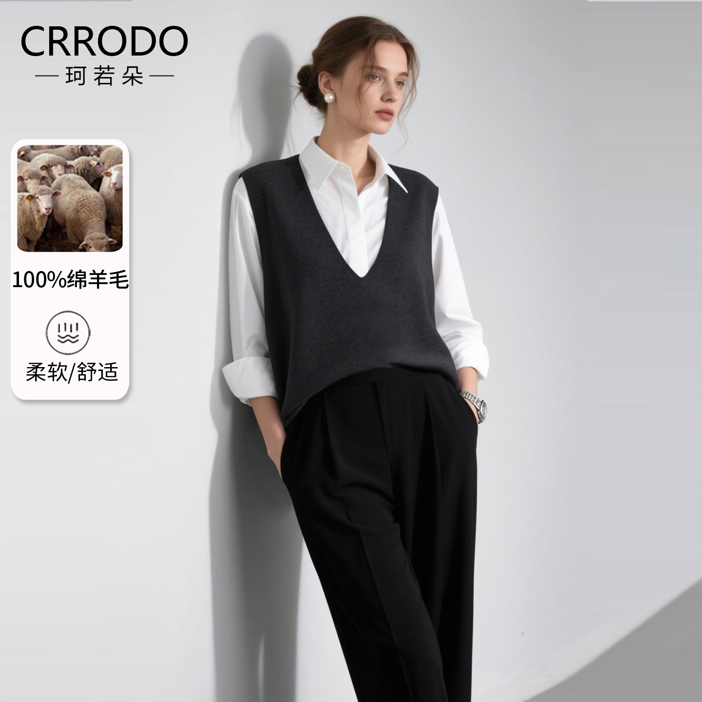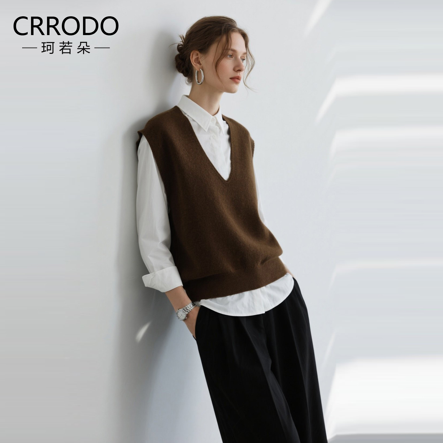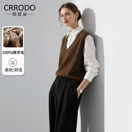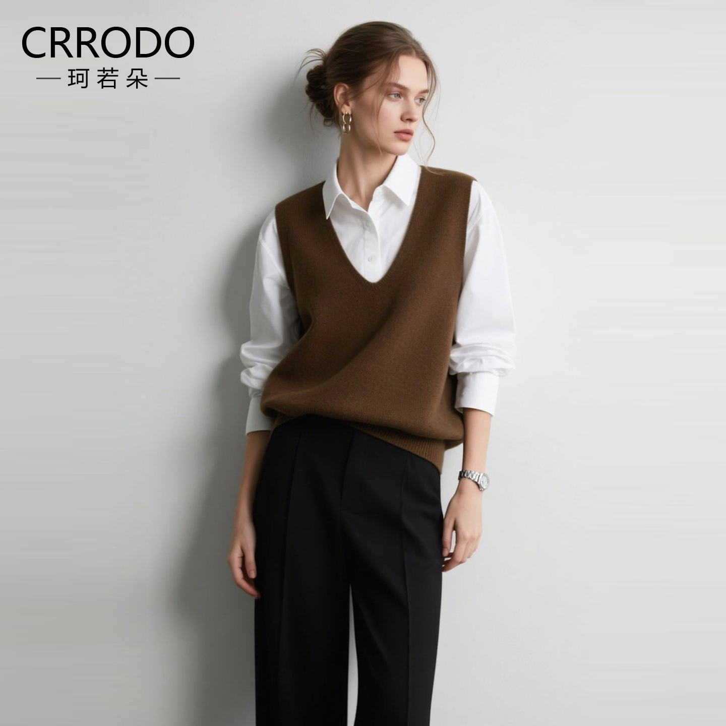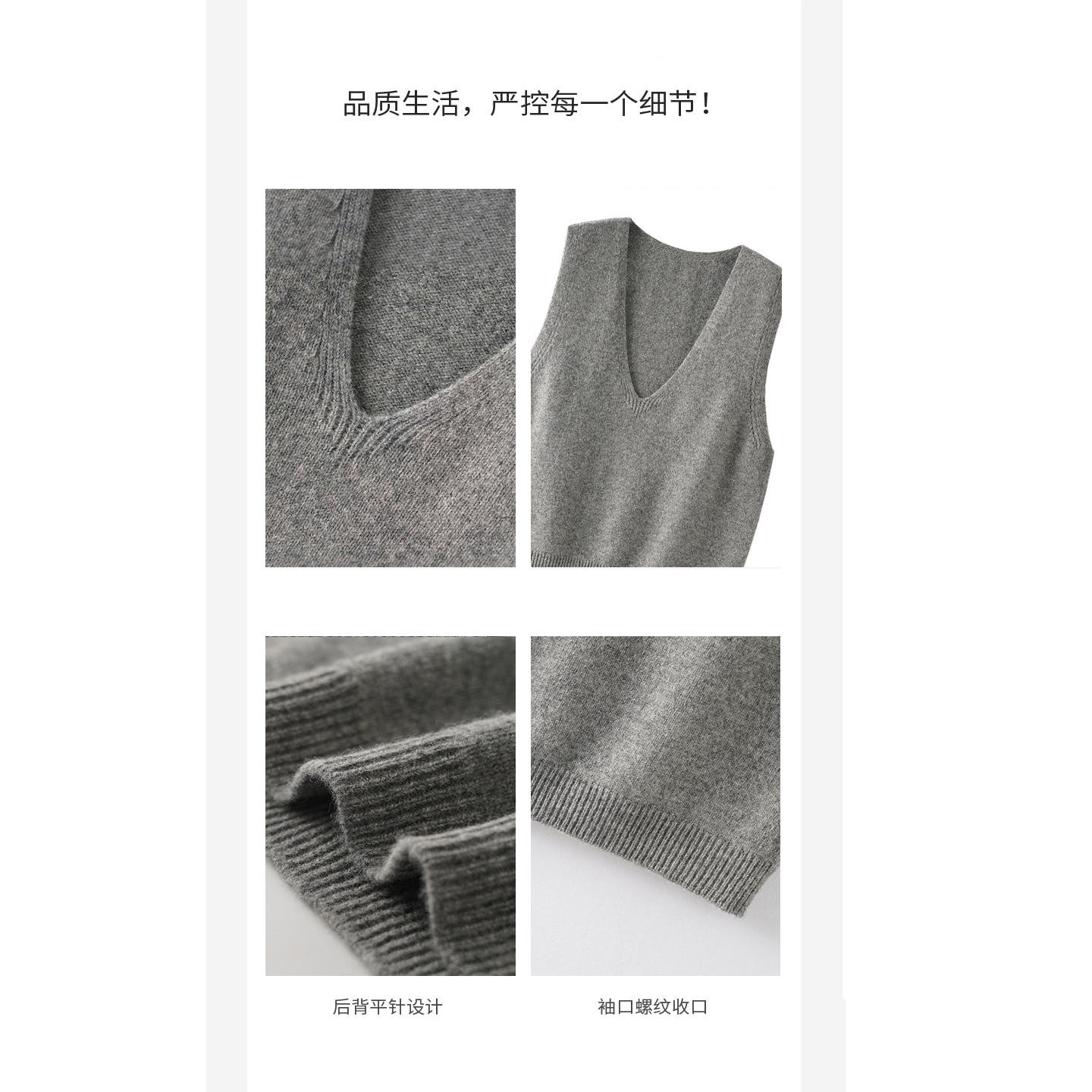 咖色深V领针织马甲女全羊毛2025秋季新款叠穿衬衫坎肩无袖背心