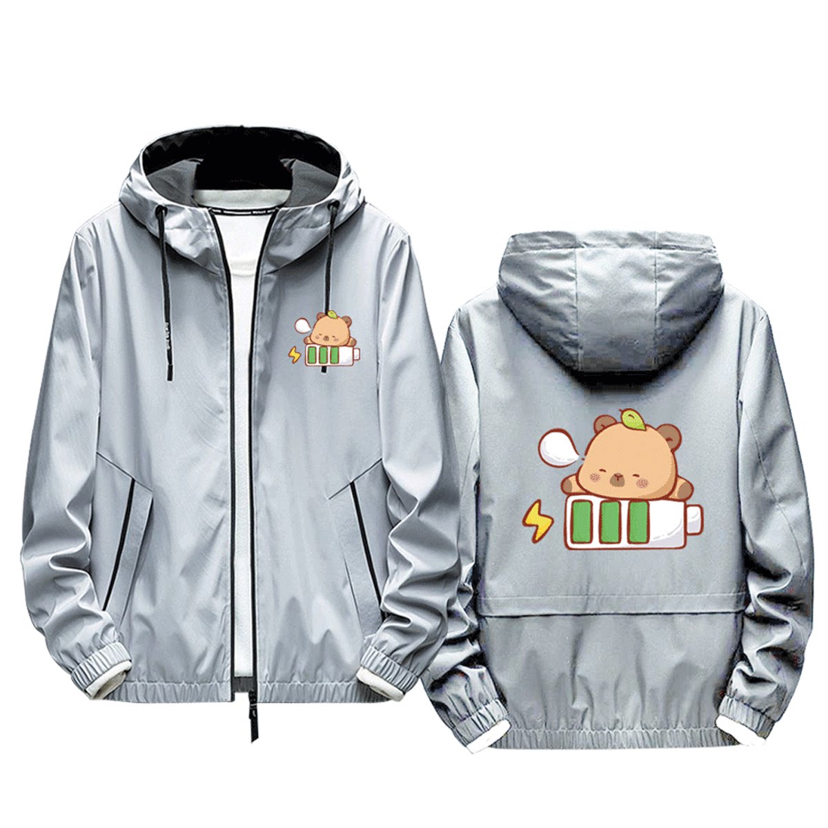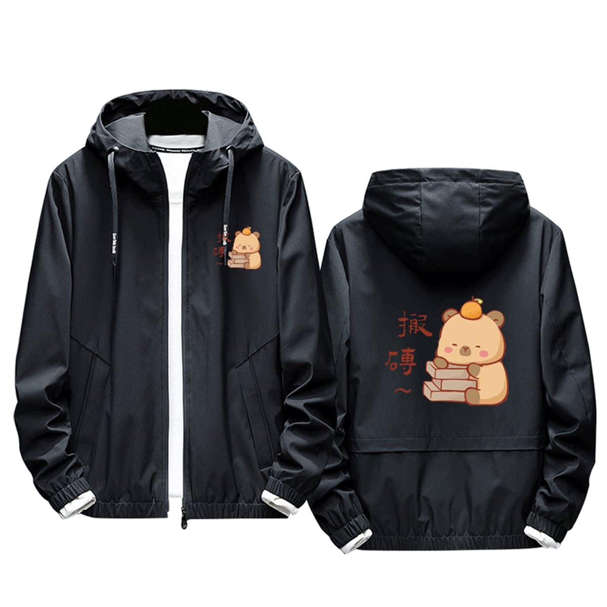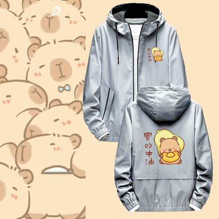 卡皮巴拉打工人联名卡通周边日系男女情侣休闲定制带帽夹克服外套