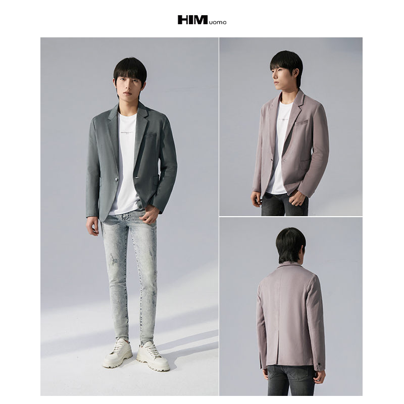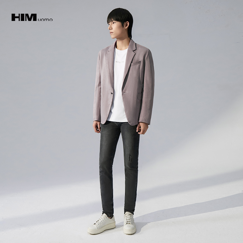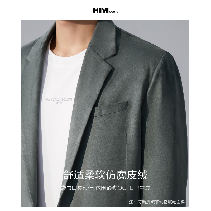 HIM汉崇 仿麂皮绒西装外套男舒适绒面质感商务休闲单西服2025秋季