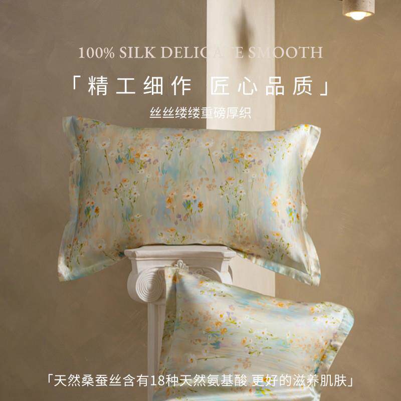 40姆米重磅真丝印花枕套100桑蚕丝枕头套丝绸美容真丝枕巾一对装