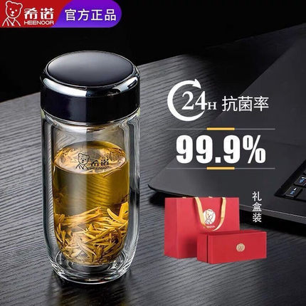 希诺双层玻璃杯银离子抗菌杯鹅蛋杯男女士高档车载大肚杯便携茶杯