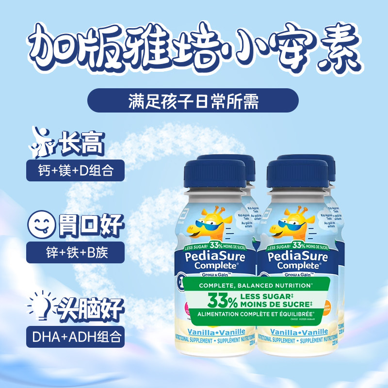 加版雅培小安素液态奶青少年成长即饮营养液香草味水奶235ml*4瓶