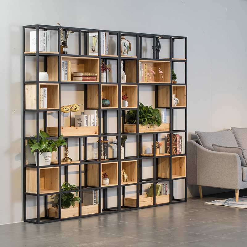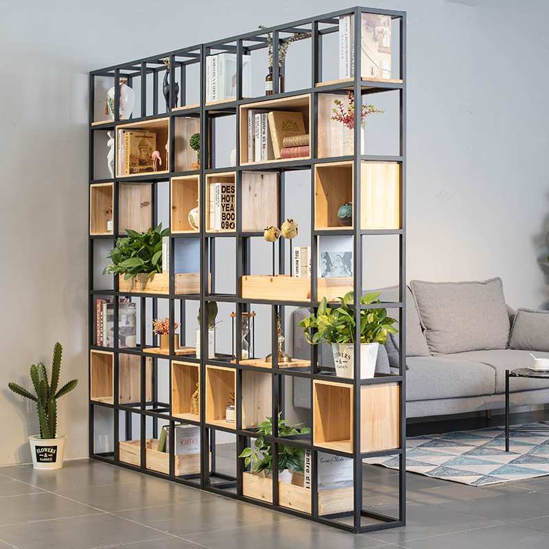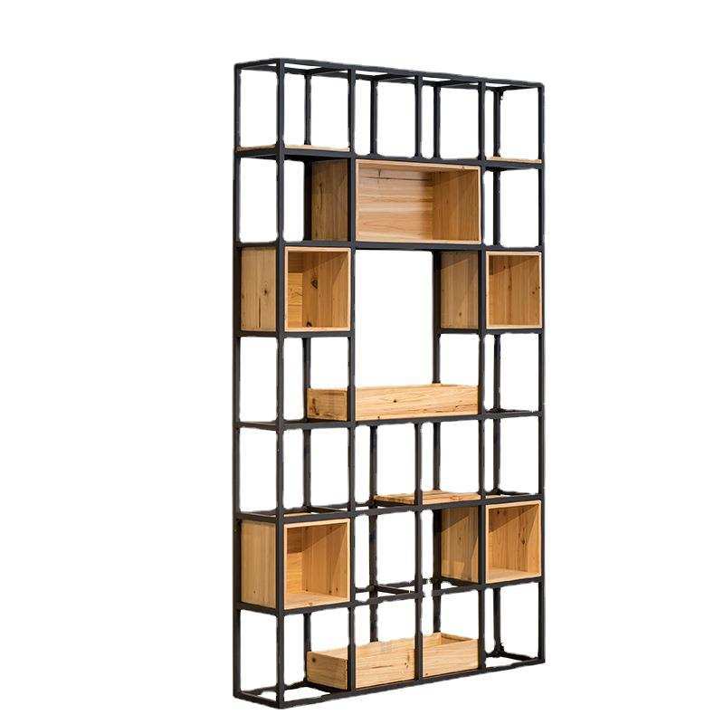 美式铁艺复古隔断置物架客厅书架实木屏风展示loft架装饰入户简约