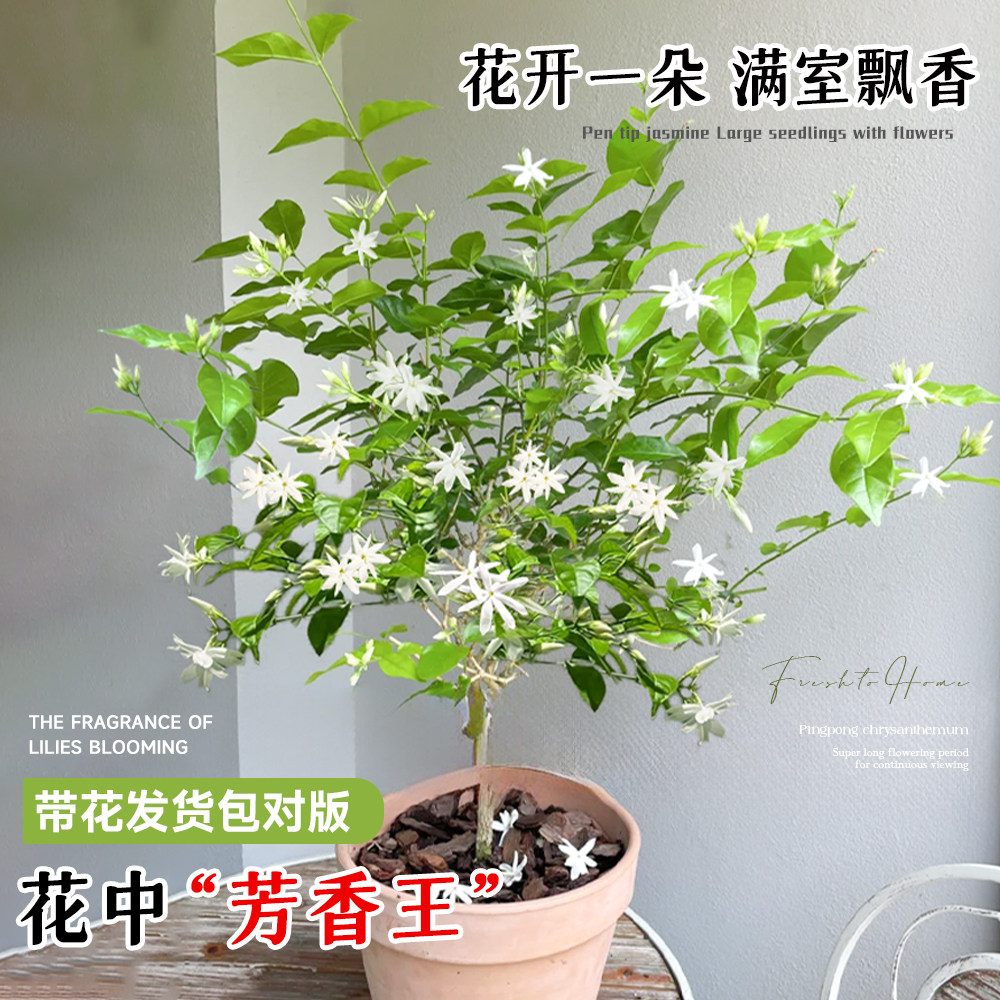 笔尖茉莉花盆栽四季重瓣老桩茉莉单瓣花苗室内好养易活的植物开花