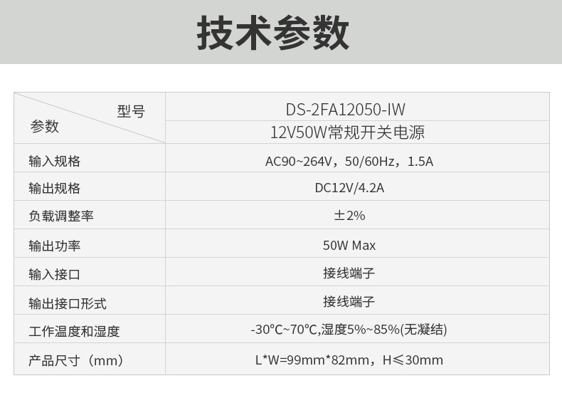 海康威视12V50W100W监控摄像机门禁电源4.2A8.5A开关电源2FA12050