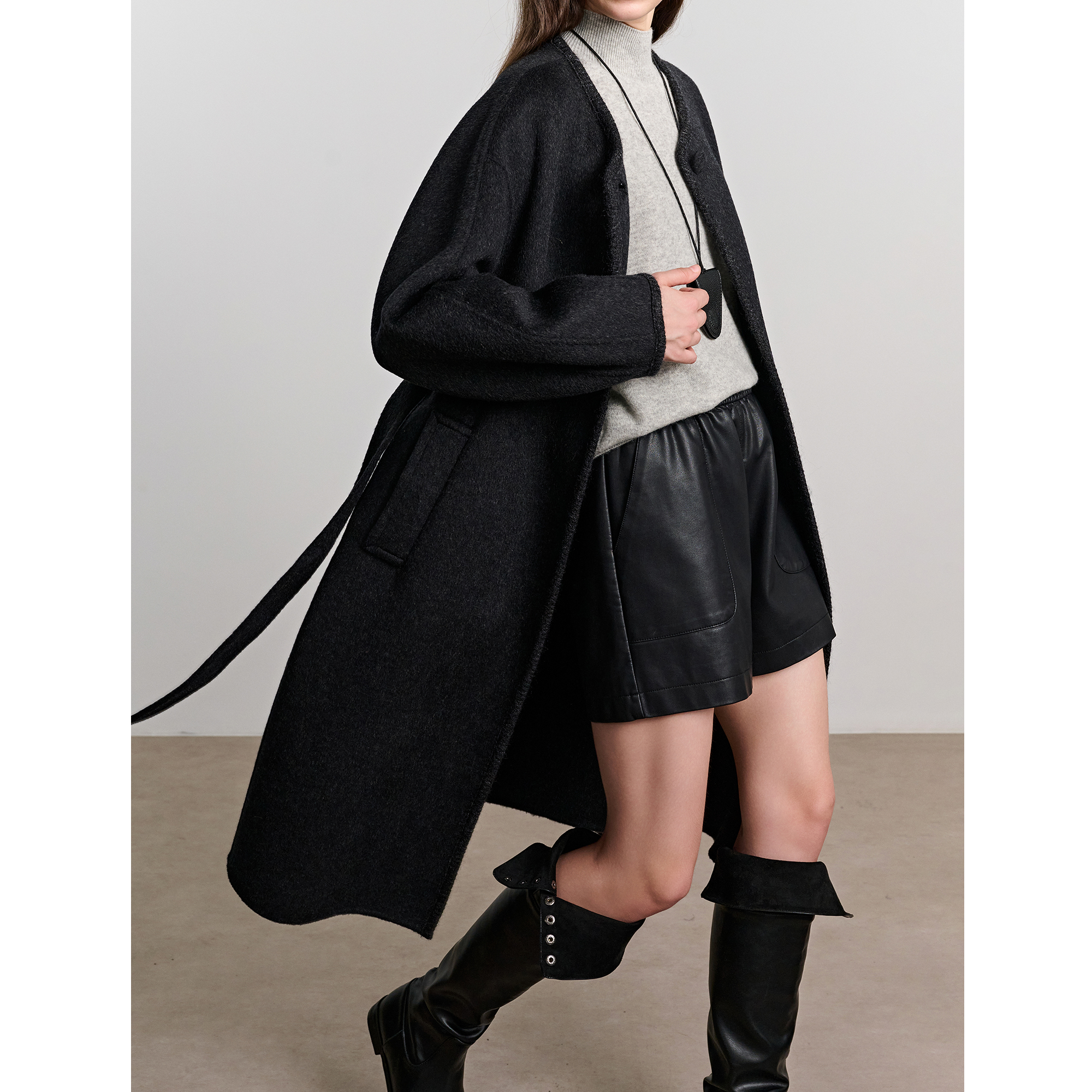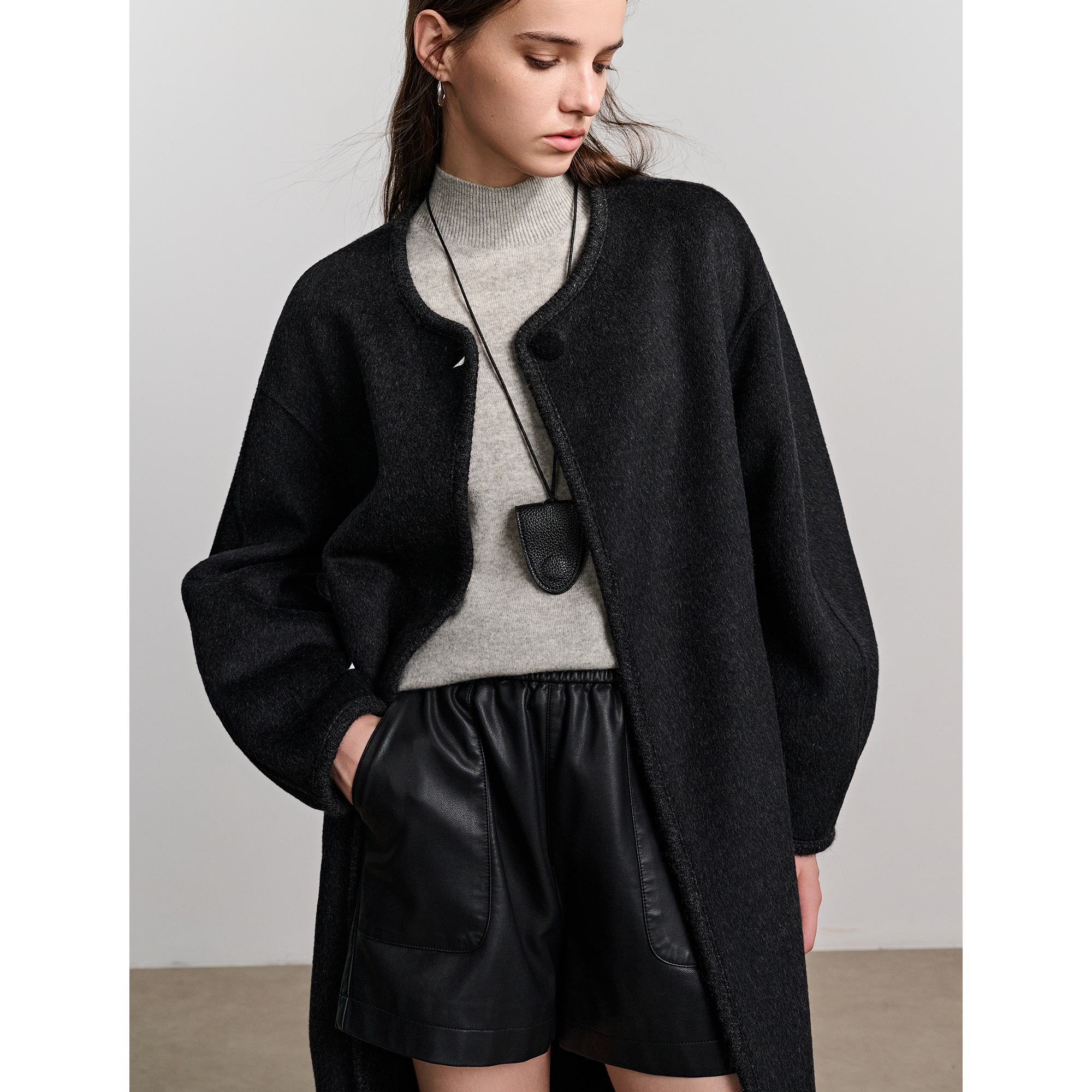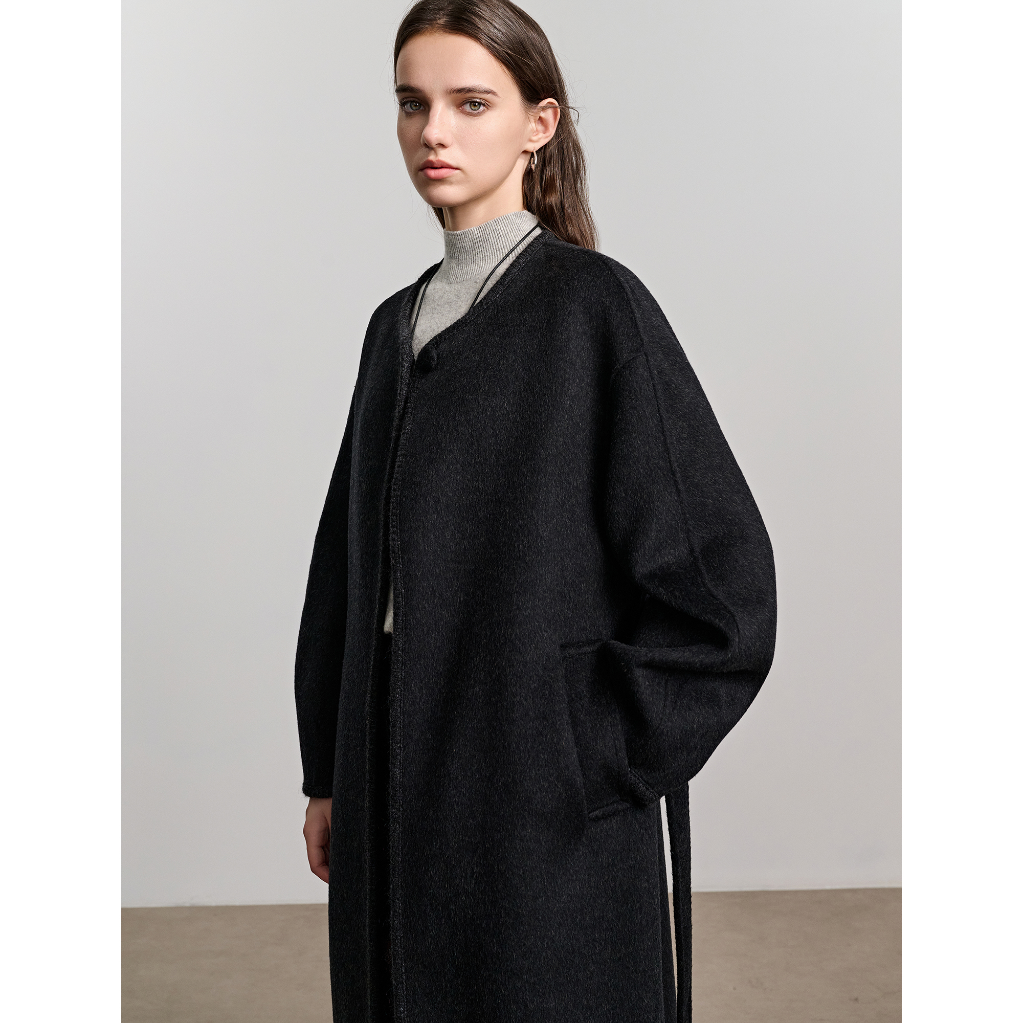 Basic House/百家好绵羊毛双面呢大衣女2025冬季新款长款毛呢外套