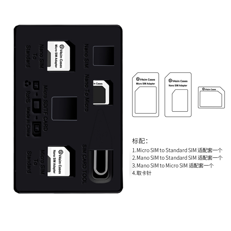 V4sim Cases卡托卡槽手机卡套sim小卡转大卡中卡电话转换通用取卡