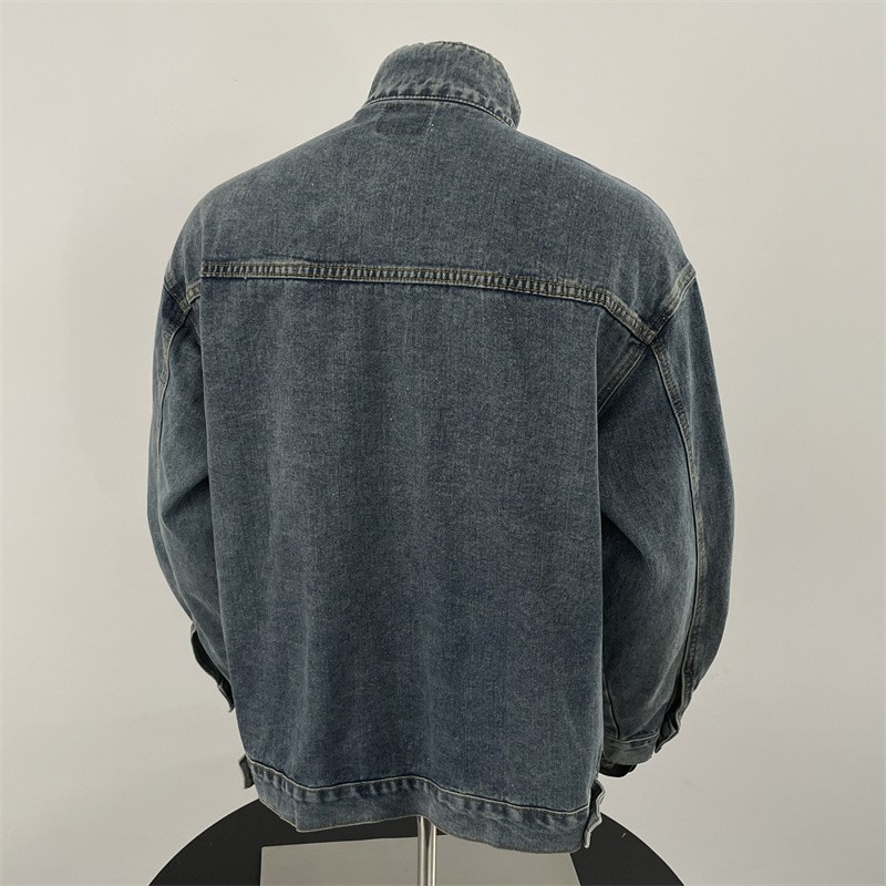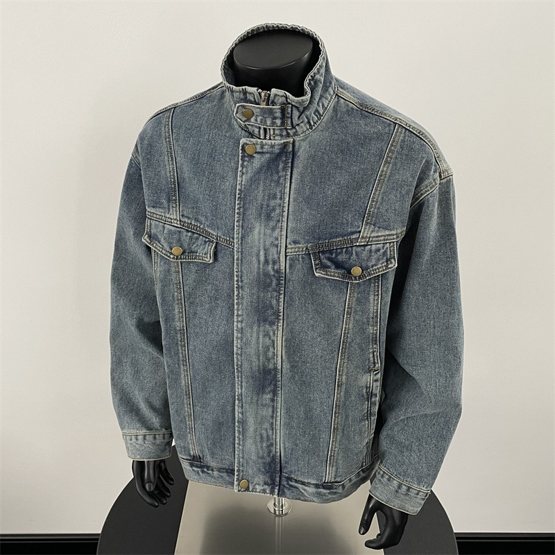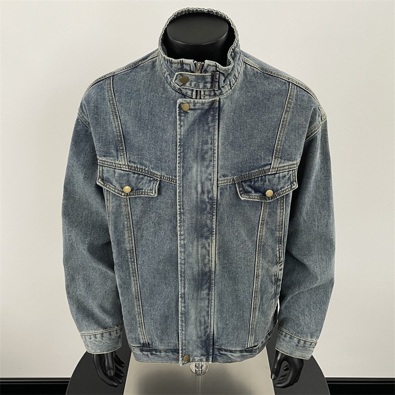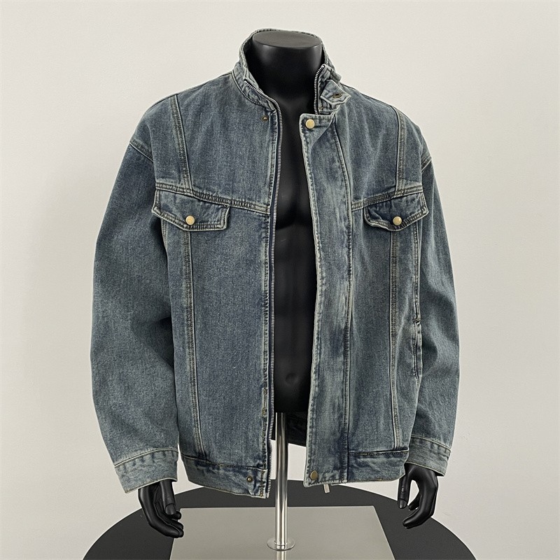 美式高街牛仔外套男春秋季高级感痞帅复古做旧立领工装夹克上衣