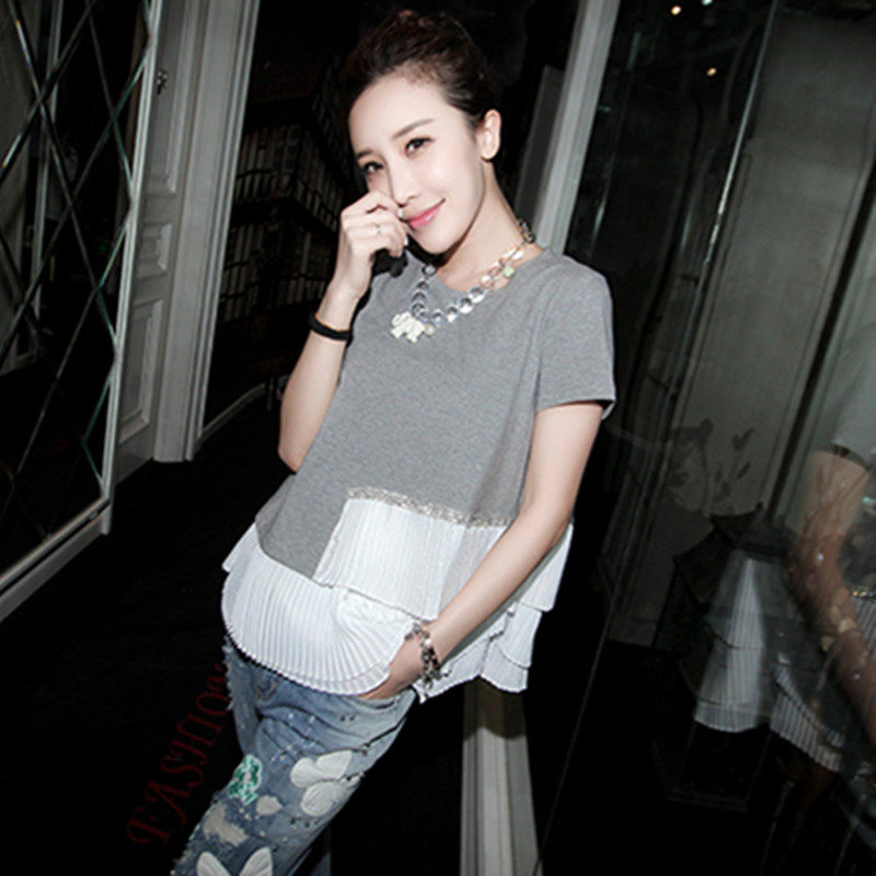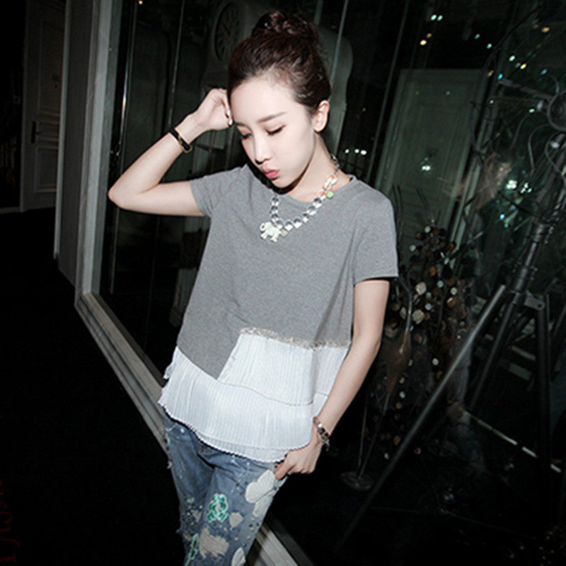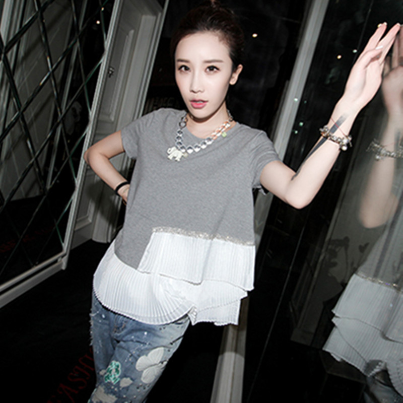 宽松显瘦镶钻韩版娃娃衫抽褶拼接